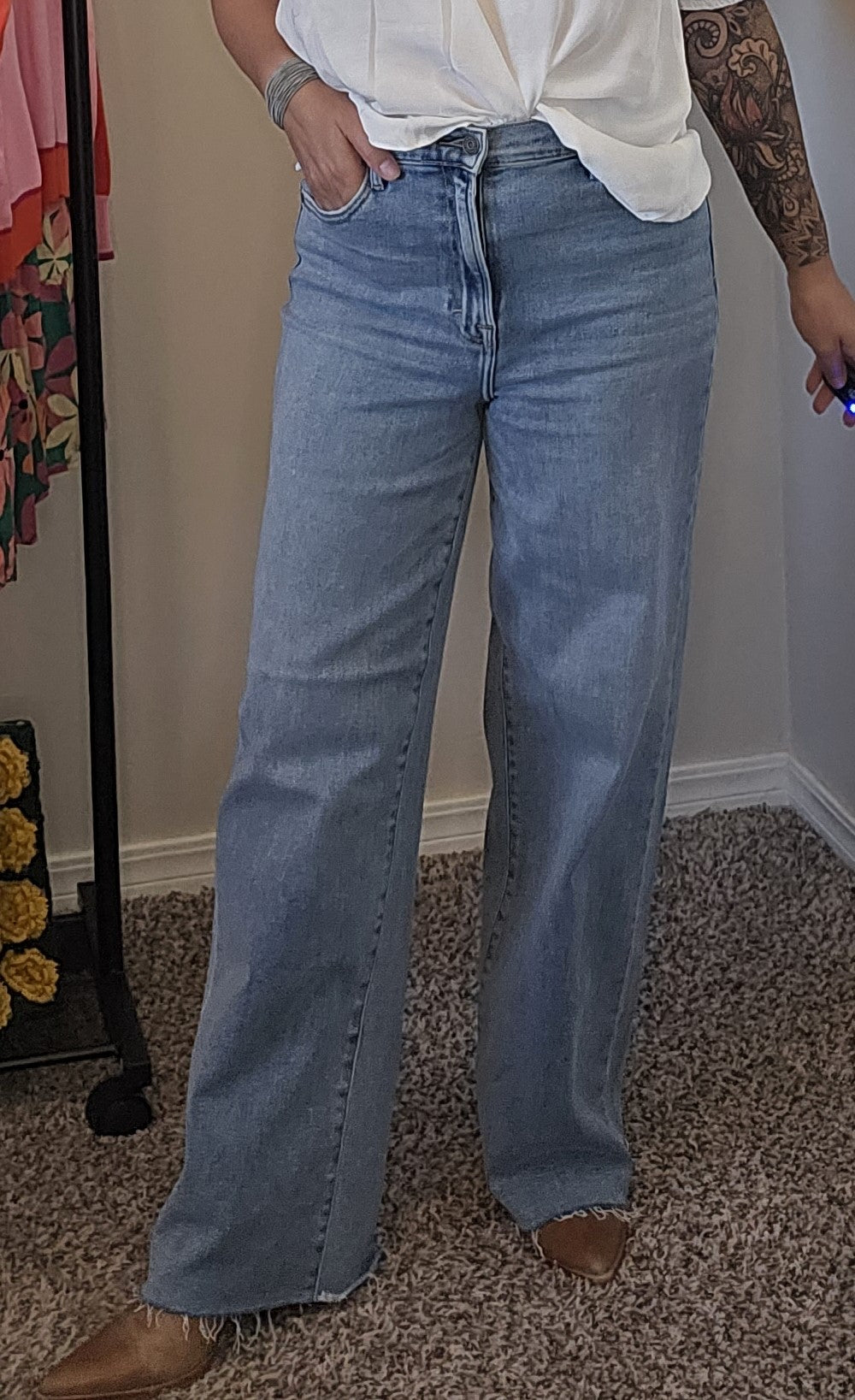 HIGH RISE 31" INSEAM DAD JEAN WITH 65% COTTON, 21% RAYON, 11% POLYESTER.
