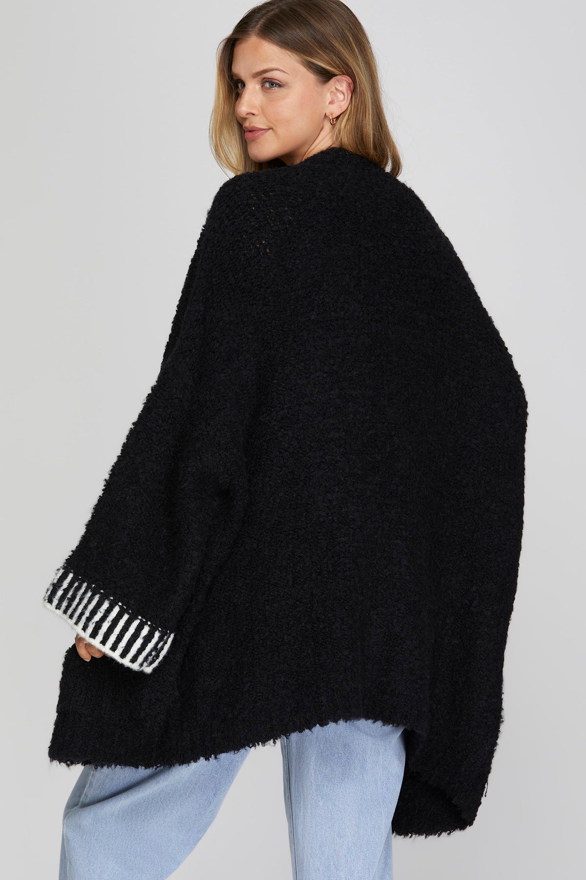 LONG SLEEVE STITCHED CONTRAST SWEATER CARDIGAN
