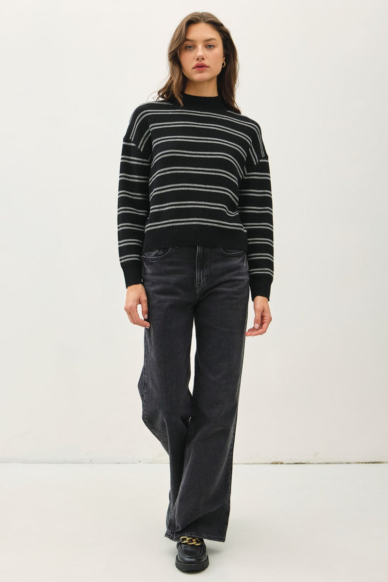 Black mocked stripe sweater