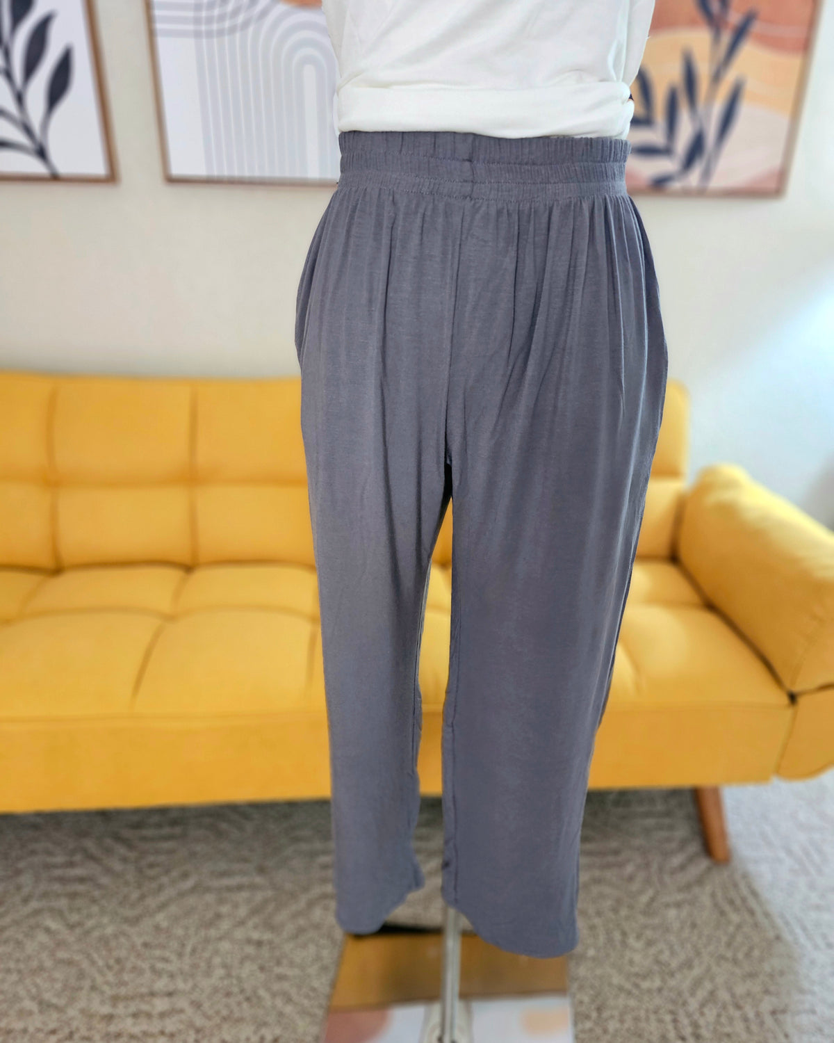 A low-key afternoon is best enjoyed in the Casual Bamboo Jogger by Studio Ko. Complete with functional pockets, ankle length, and a loose fit.  These easy-wearing pants are perfect for lounging, shopping or even jogging.