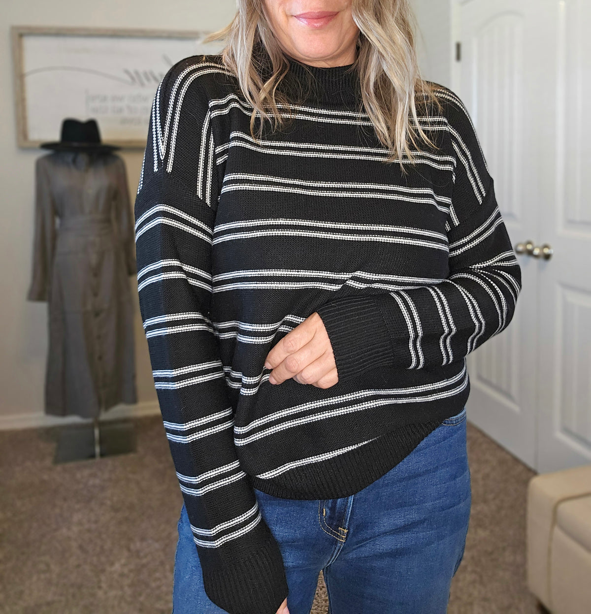 Classic fit mock neck sweater. A perfect go to that you can just throw on.