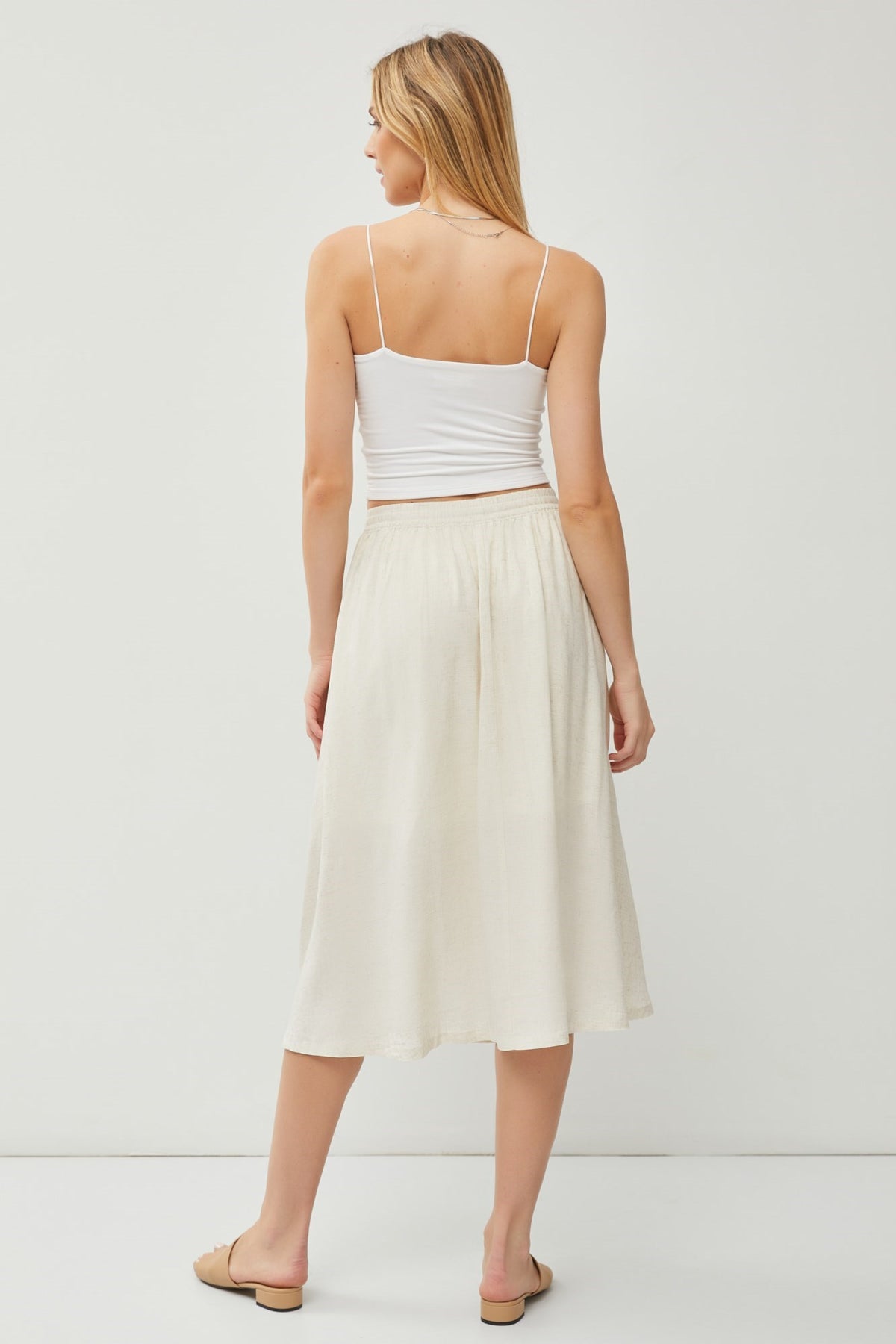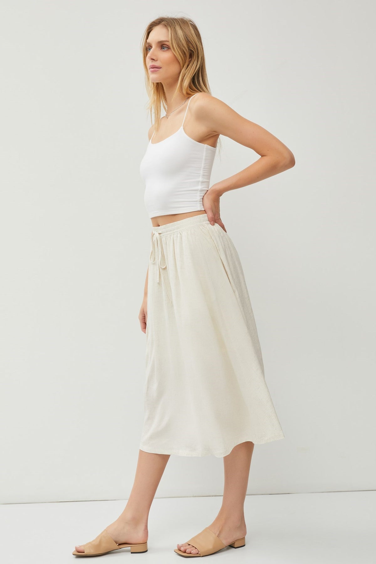 Linen Blend Drawstring Skirt