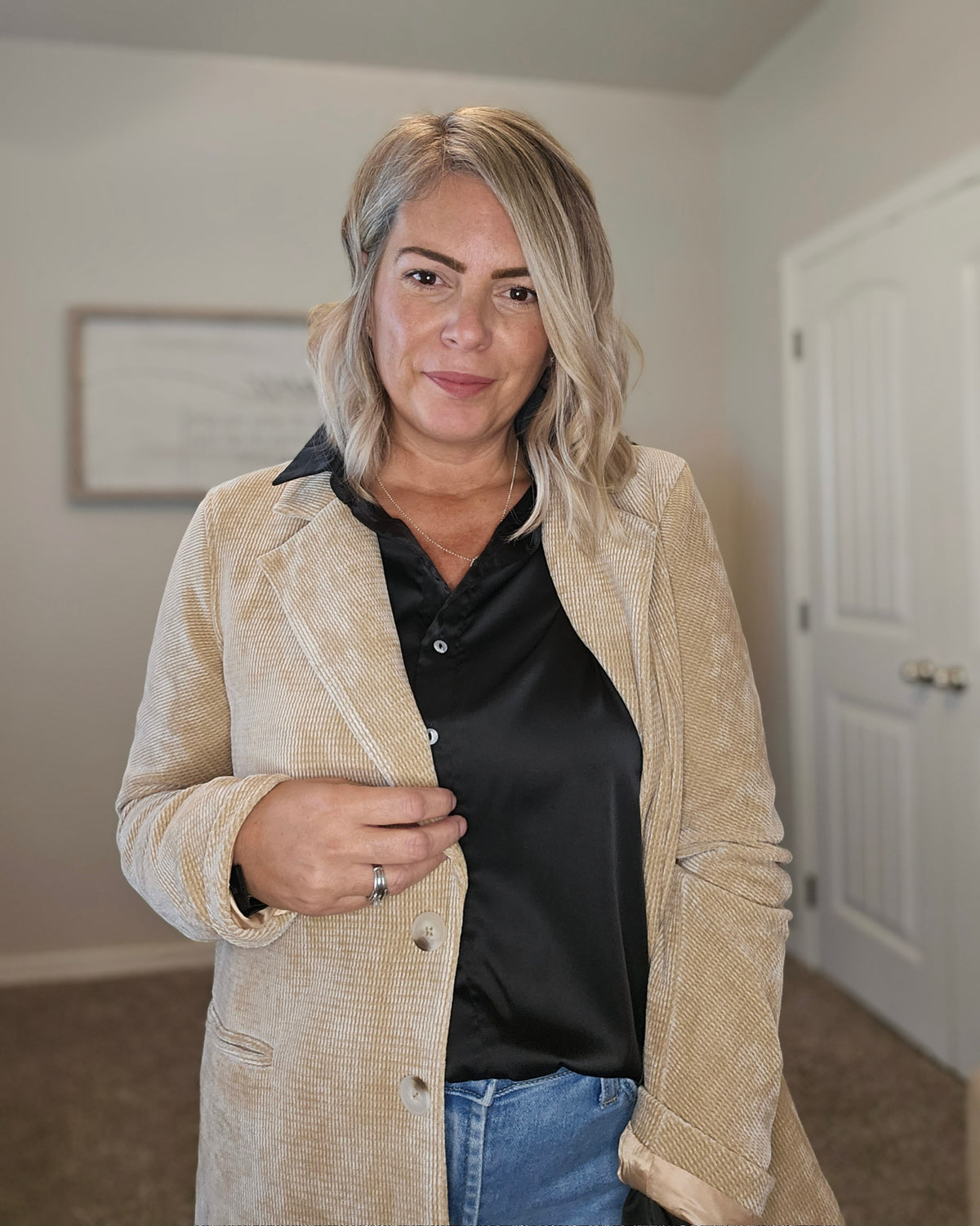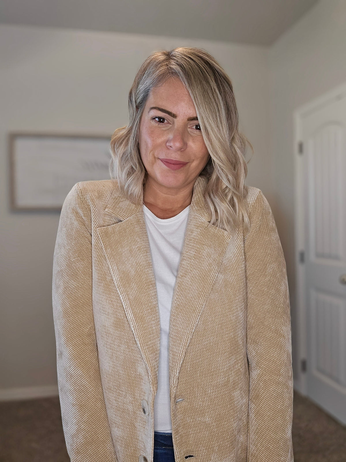Wow Ladies, this blazer is a show stopper!! Beautiful sand color and super soft with a satin liner.