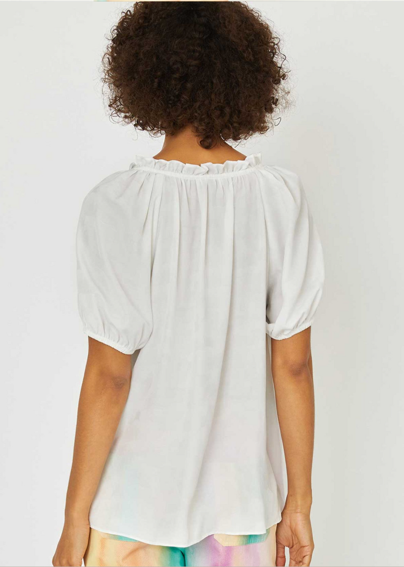 Ruffled split neck half placket blouse