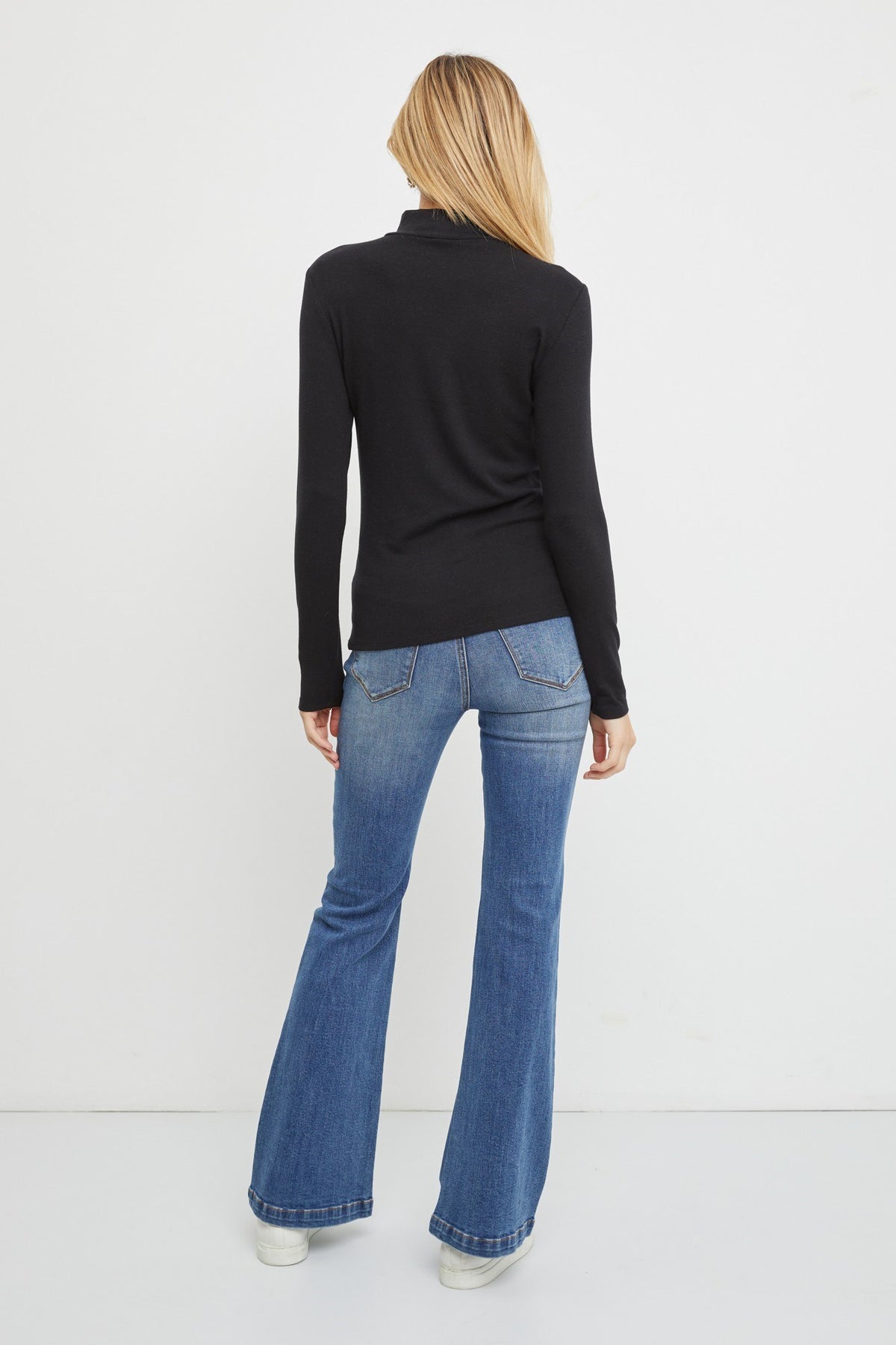 This ultra soft turtleneck top is the perfect basic. The cut is flattering and not to snug, making this top perfect for layering or wearing alone.